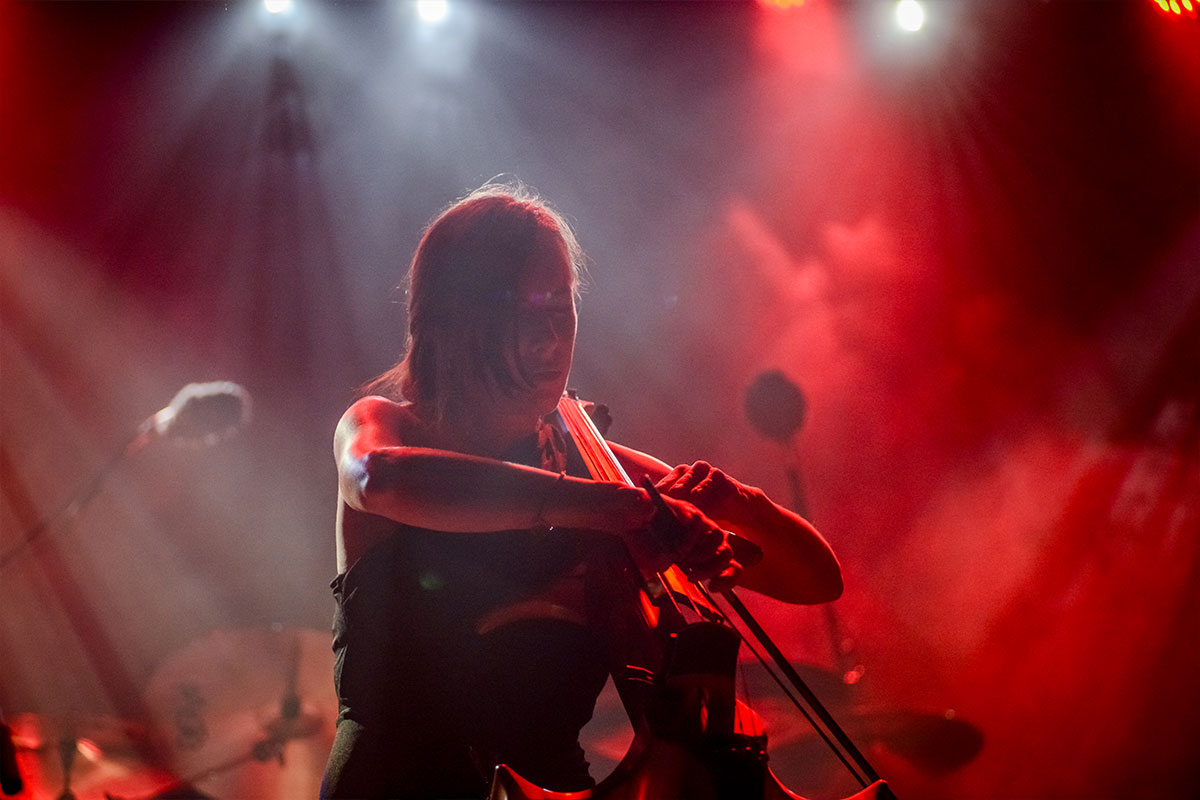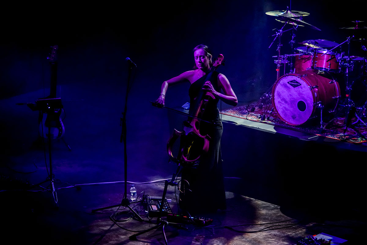 Jo Quail, a virtuoso composer and cellist, opened God is an Astronaut’s concert at LAV-Lisboa ao Vivo with her electric cello, a technical mastery that combines looping and effects for a concert of contemporary instrumental music that transcends genres.
