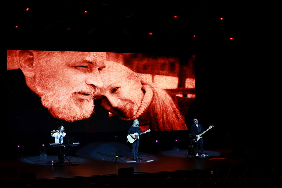 To the audience’s applause, Oswaldo Montenegro was accompanied on stage for two hours by his longtime partner, Madalena Salles, and multi-instrumentalist Alexandre Meu Rei.